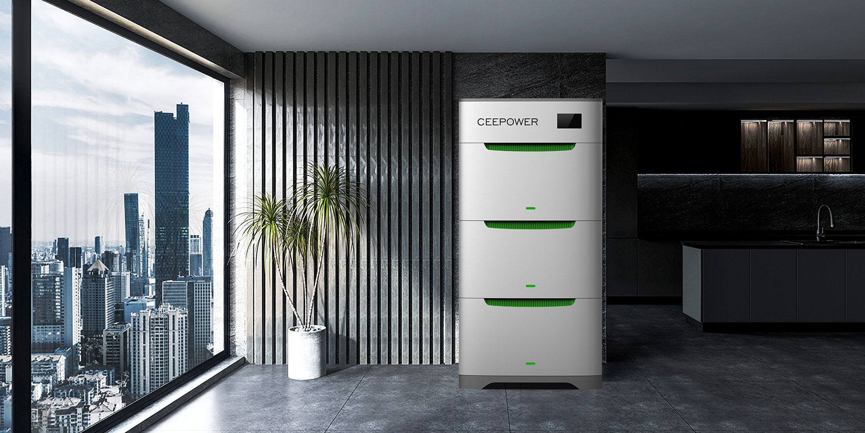 這款戶用儲能采用簡約的方體設計,圓潤的倒角設計增加了產品的親和力,綠色的點綴實現了視覺分層,也寓意著節能環保的愿景。